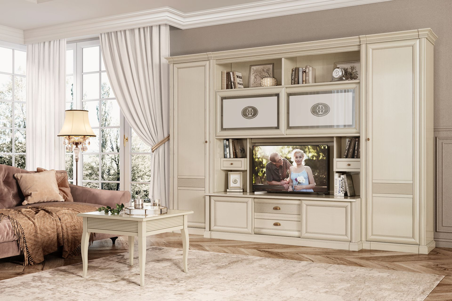 - Отделка фасадов выполнена итальянским шелковисто-матовым лаком и патиной (эффект состаренного дерева);