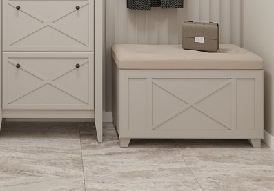 Изящная банкетка со стильными скошенными опорами дополнит не только классический интерьер, но и любую современную обстановку. Мягкий оттенок «кашемир серый» позволяет создать особую атмосферу домашнего уюта. Общий стиль подчеркивает декоративный элемент фахверк.