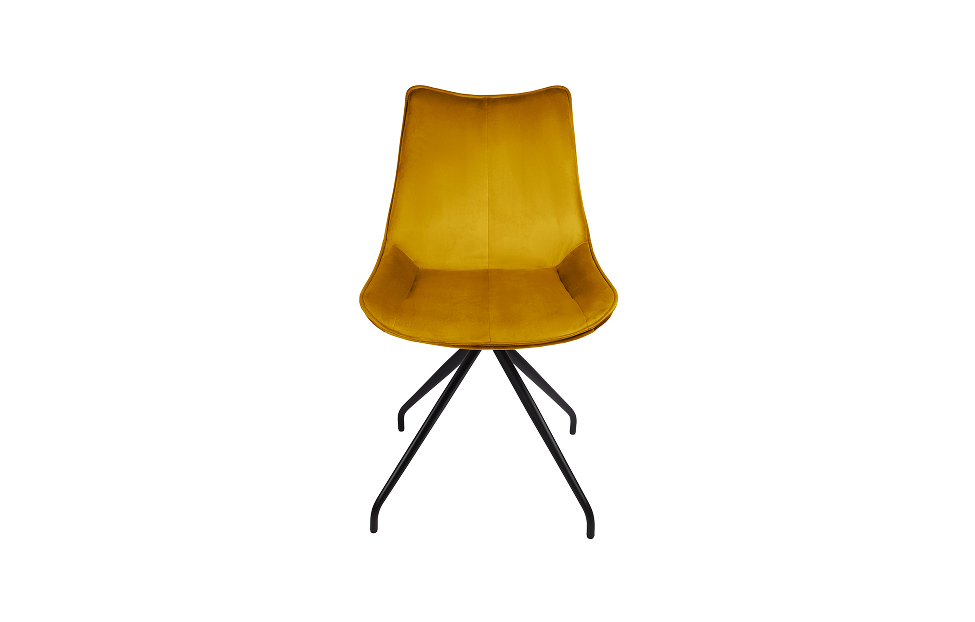 Стул Барса с поворотным механизмом прекрасно впишется в любой интерьер и комнату. Такой стул можно использовать как в качестве обеденного стула, так и в виде рабочего кресла к письменному столу. Обивка из микровелюра в актуальном горчичном оттенке прекрасно гармонирует с металлическими ножками черного цвета. Такие стулья украсят современные интерьеры, а также пространства в стиле эклектики.