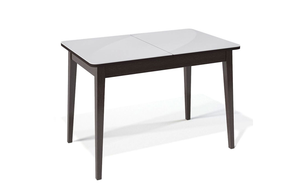 Стол обеденный Орпен квадратный раздвижной 1100М опоры венге, столешница - стекло белое сатин.