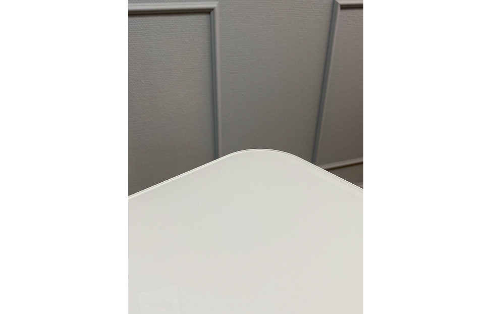 Столешница из стекла надежно защищает стол от влаги и горячего. Для данного стола применяется дорогое, просветленное стекло optiwhite которое передает чистый, яркий цвет без зеленого бутылочного оттенка. Стекло надежно крепится к подложке из ЛДСП на герметик, распределенный по всей поверхности столешницы.