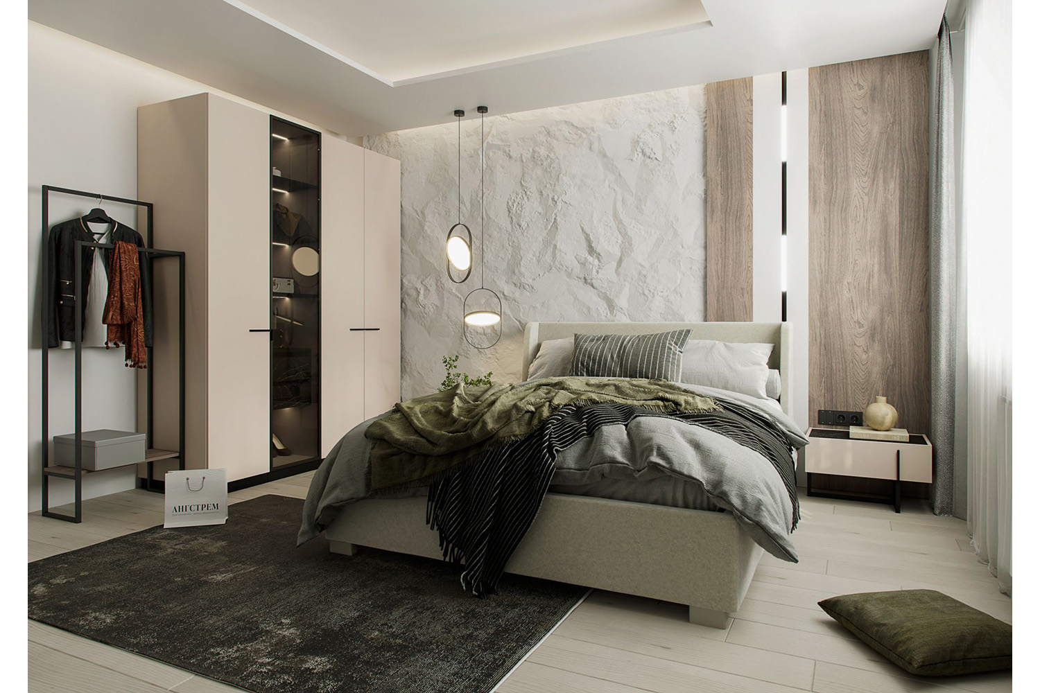 – описание: стиль современный, минимализм, размер 229.1x90x61.2 см, цвет кашемир серый, камень пьетра, черный графит, назначение для одежды.